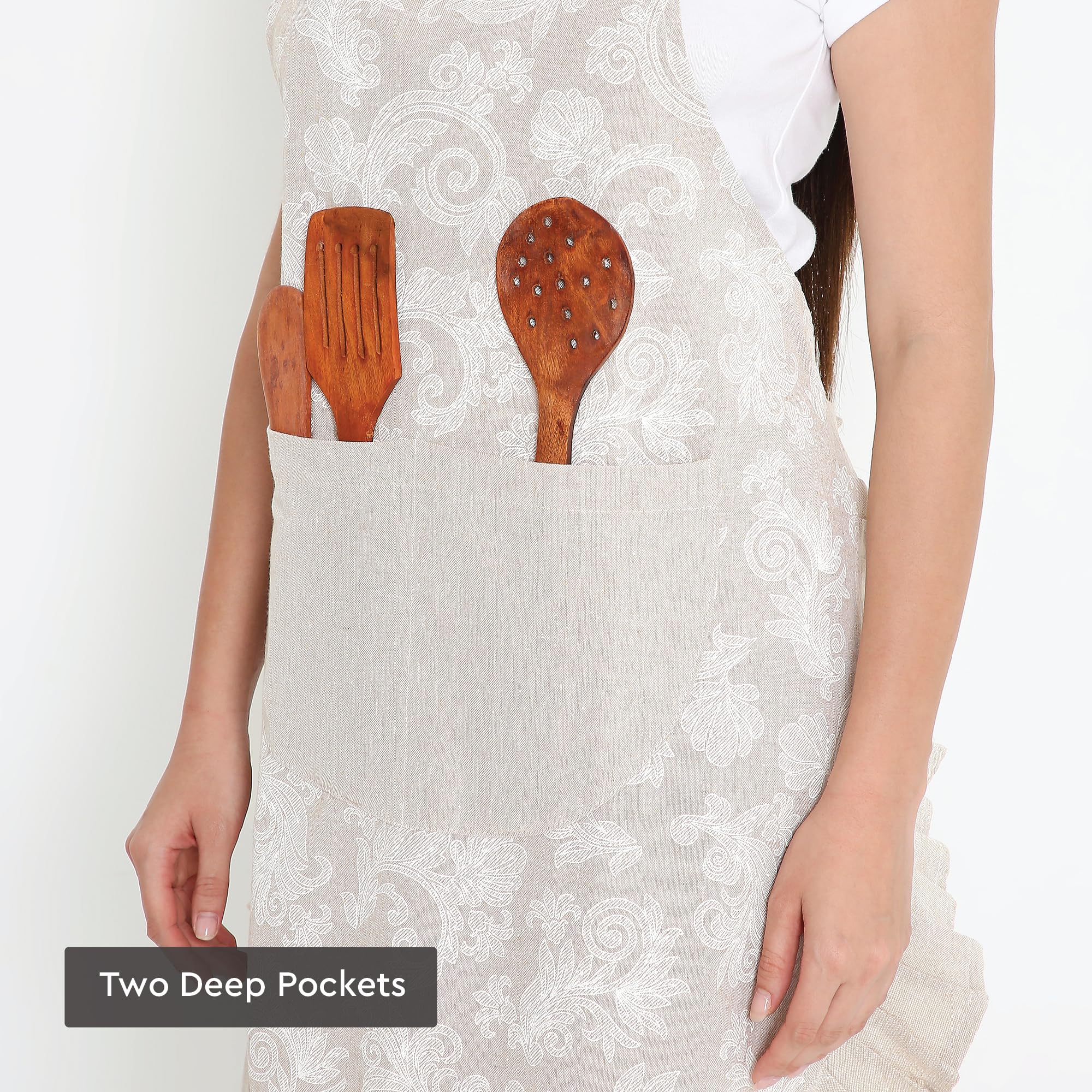 - SPACIOUS POCKETS FOR CONVENIENCE: Our women's apron is tailored with two large pockets, allowing you to carry kitchen tools, recipe cards, or even craft essentials. These cooking aprons for women with pockets ensure efficiency and functionality during every task.