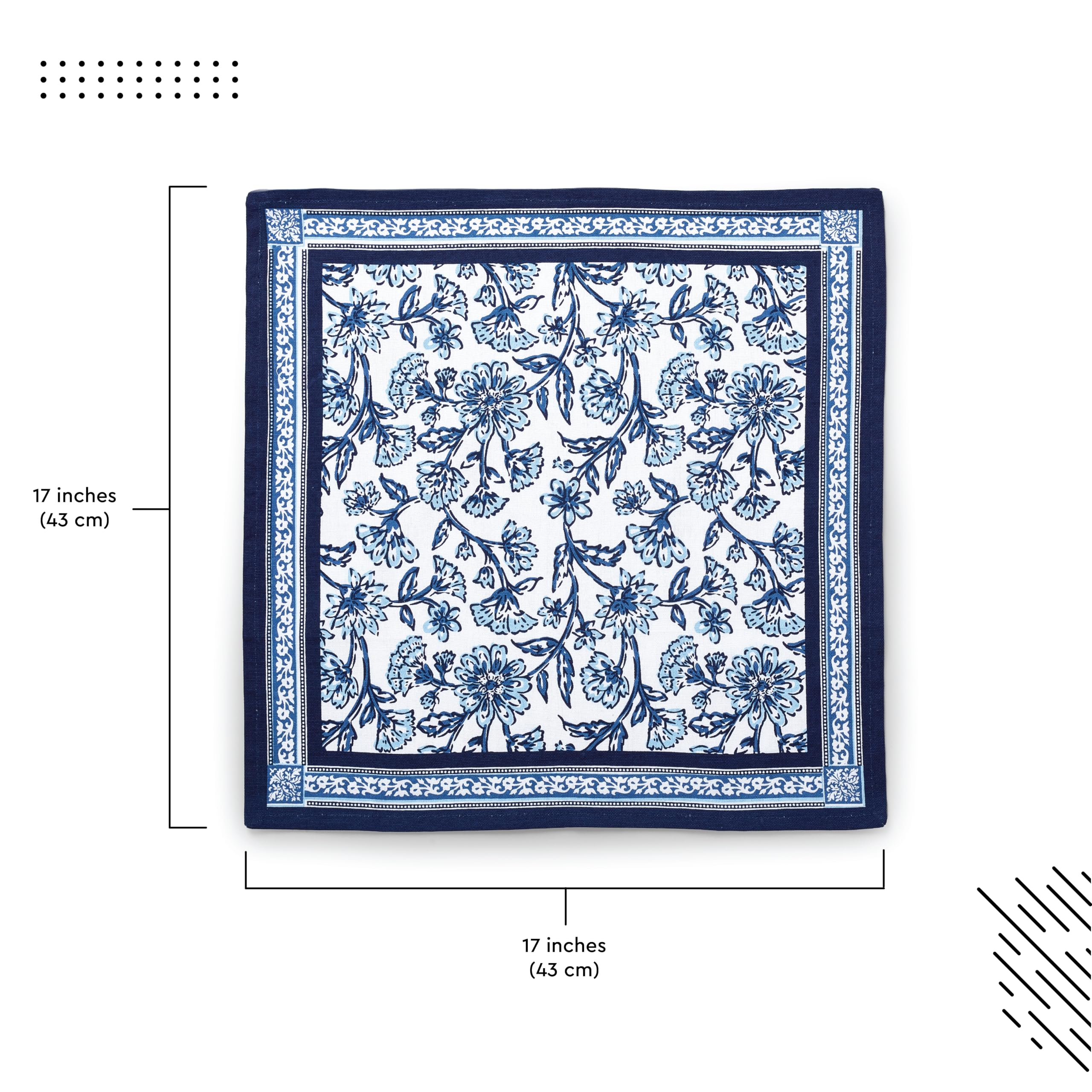 - BEAUTIFUL BLOCK-PRINTED DESIGNS: Each napkin in this set features a unique and stylish Sanganeri hand-printed design from Jaipur. The indigo color adds a touch of elegance to your dining table, suitable for both casual and special occasions