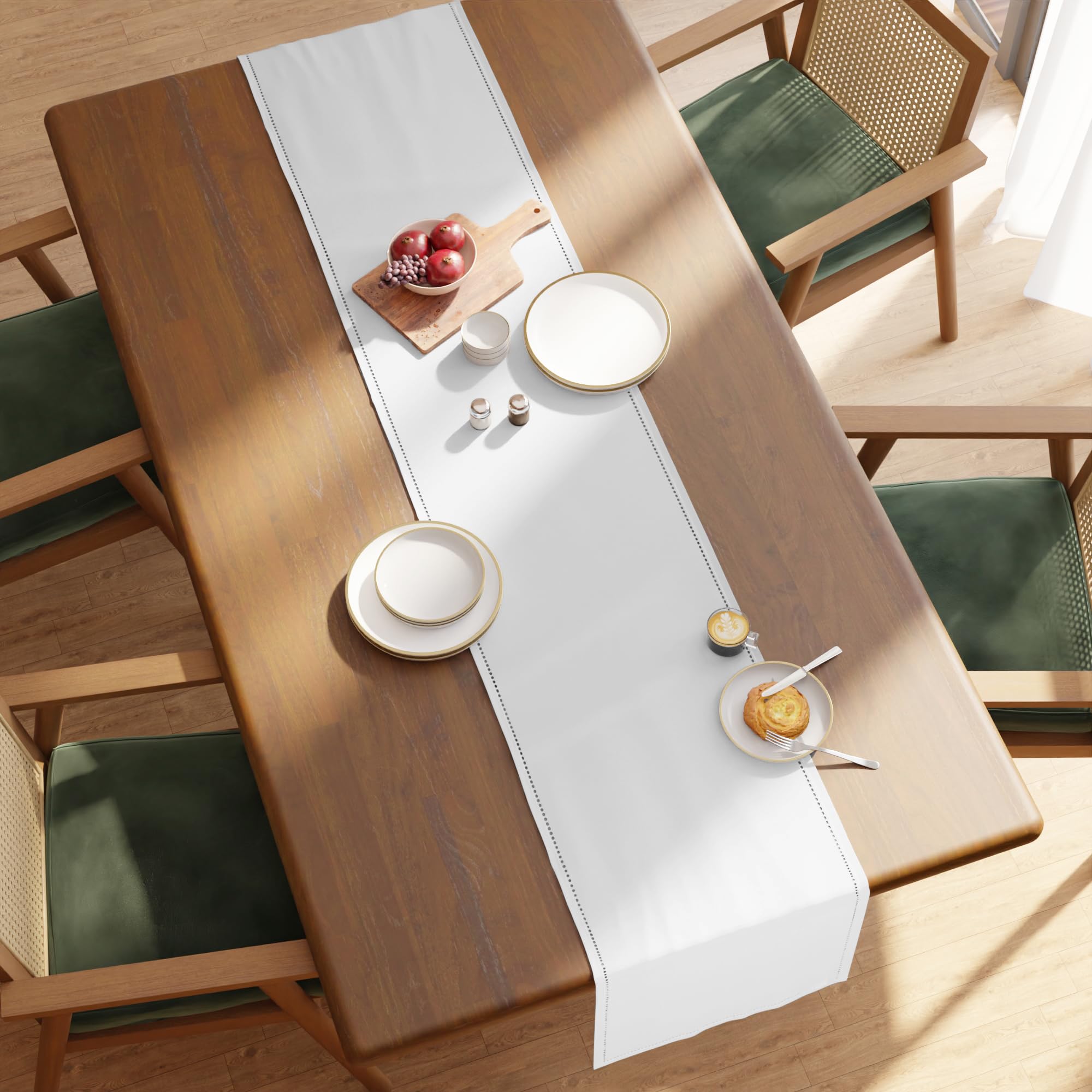Encasa XO Dining Table Runner 16"x72" | Pure Cotton Hemstitched Design | White - Machine Washable—