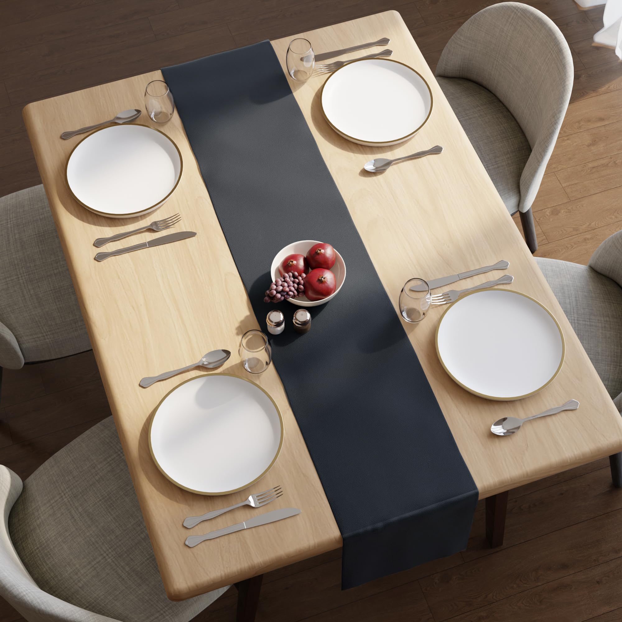 - WATERPROOF & EFFORTLESS TO CLEAN: Designed for practical living, our faux leather table runners are completely waterproof, making spills and messes a breeze to clean. Simply wipe away any liquids or food particles with a damp cloth, ensuring your kitchen table surface remains protected and spotless. This is ideal for busy families and frequent entertaining, adding convenience to your table setting.